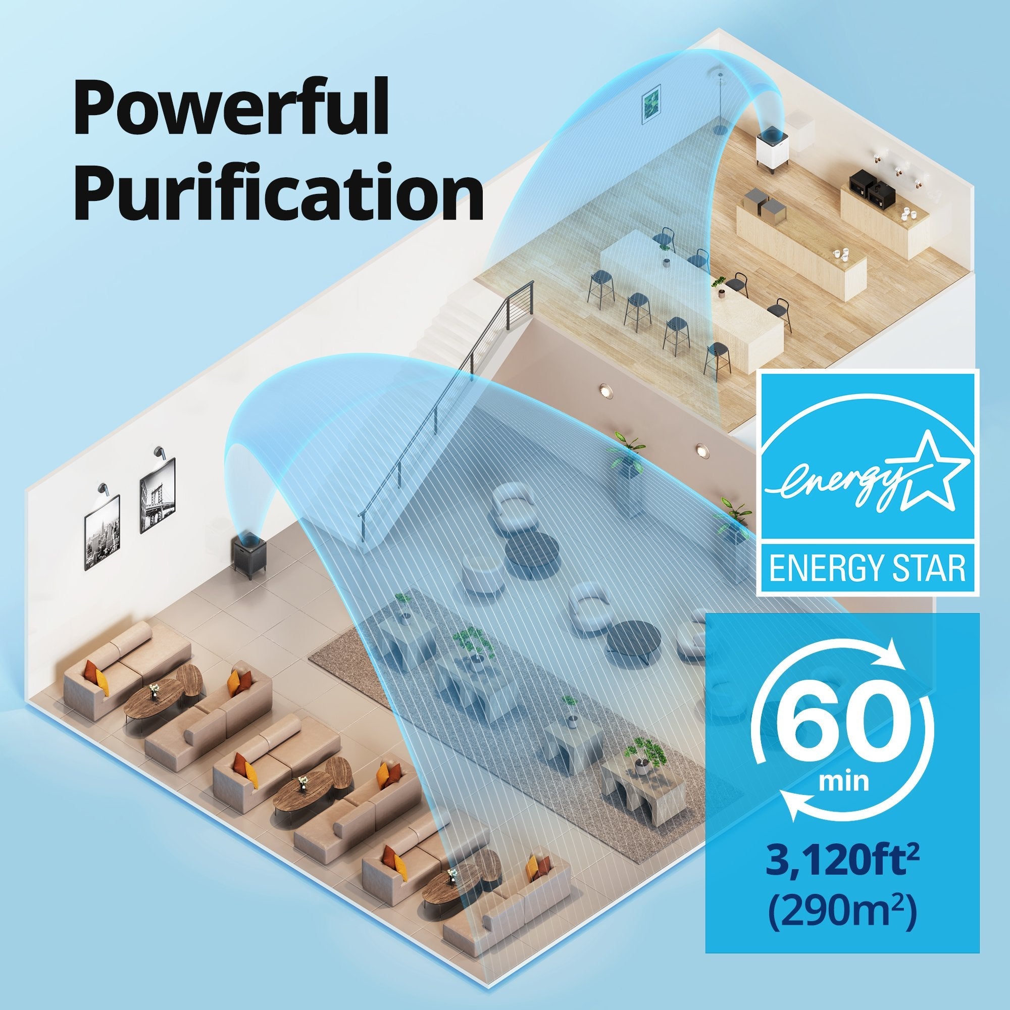 Purifies 2,512 ft² in 60 mins