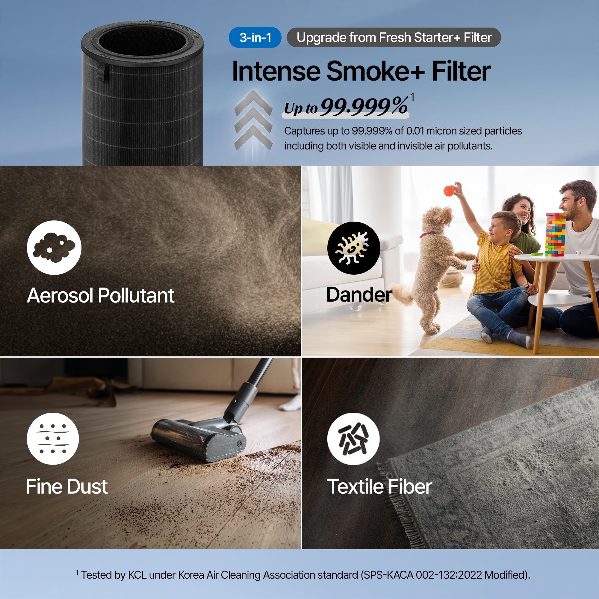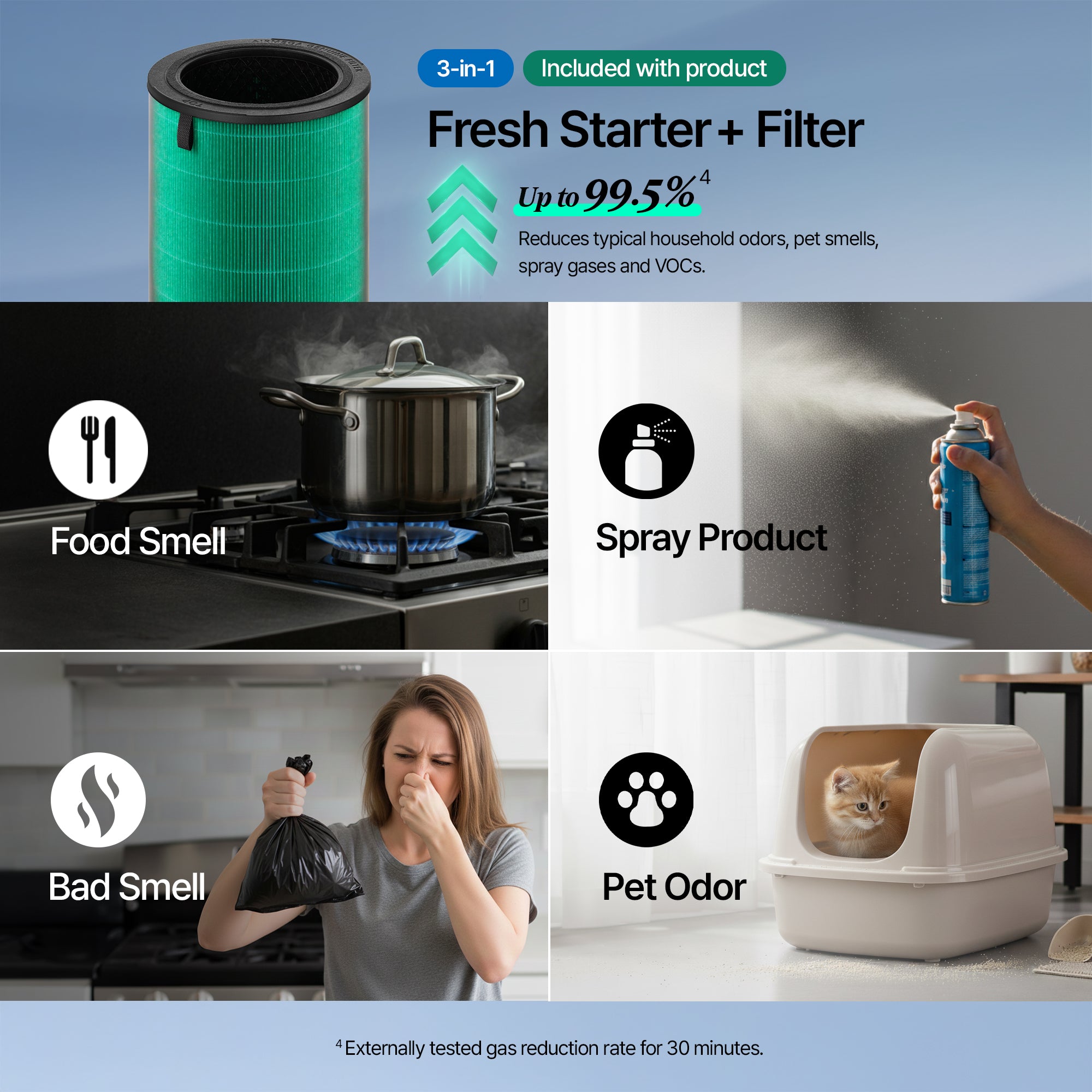 3-in-1 custom filter(Vacuumable Pre-Filter + HEPA Filter + Deodorization