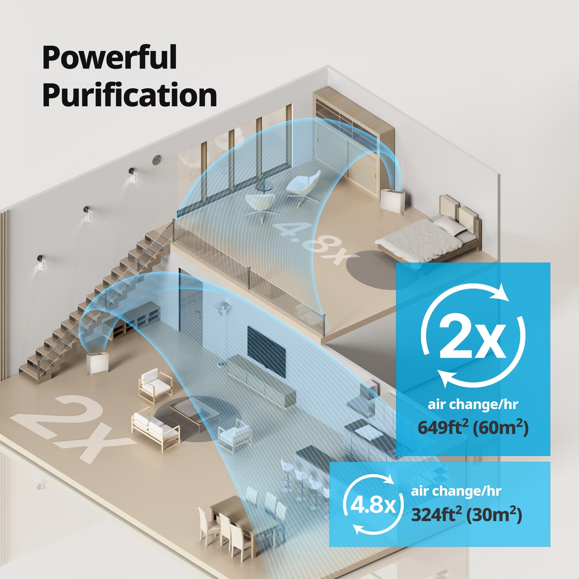Purifies 1,298 ft² in 60 mins